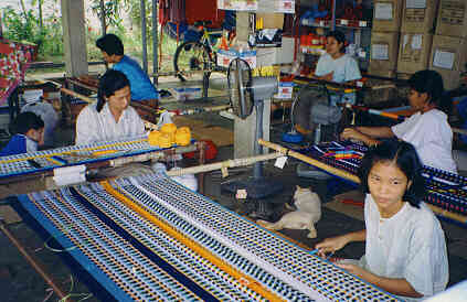 Hammocks Factory: Our Workshop in Phrae, Northern Thailand. Foreground: Colours KATA